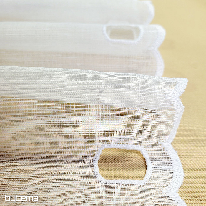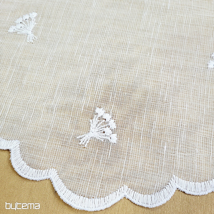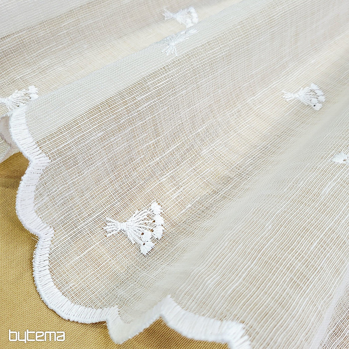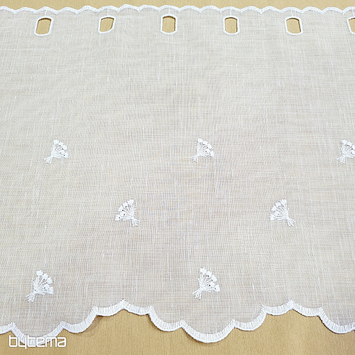 We offer the curtain in three height sizes. At a height of 60cm and 90cm, the curtain has an embroidered flower in the middle of the panel.