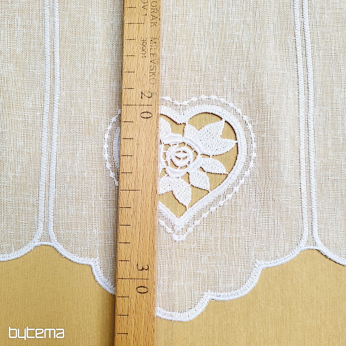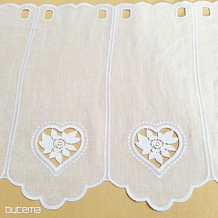 The 70 cm high curtain has a small heart embroidered in the middle.