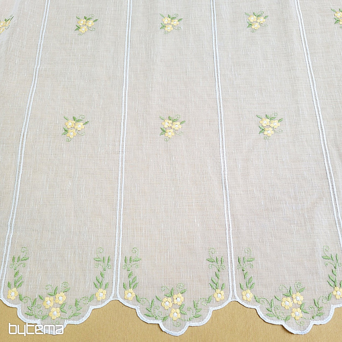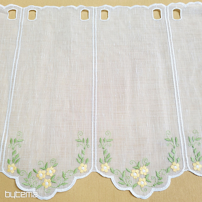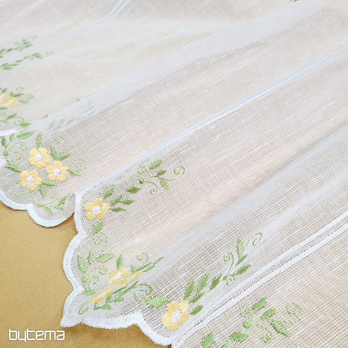 We offer the curtain in three height sizes. At a height of 60cm and 90cm, the curtain has an embroidered flower in the middle of the panel.