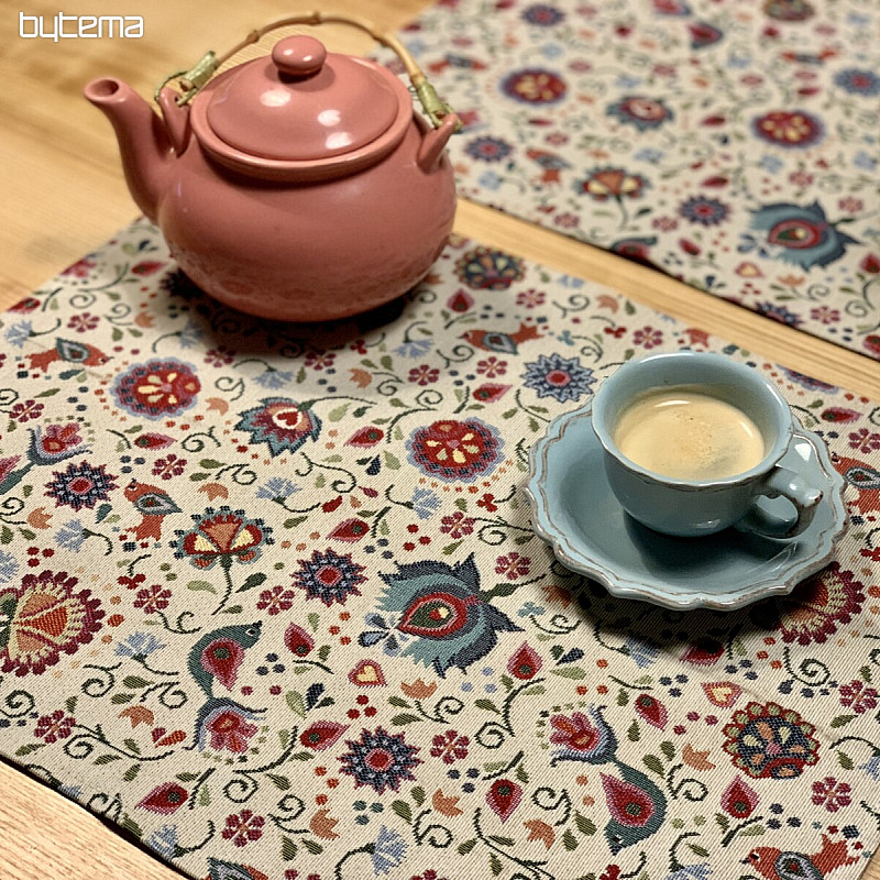 JURKOVIČ tapestry tablecloth with the motif of painted flowers will delight all fans of country style. For it, we offer tablecloths and decorative pillows, as well as tailoring of non-standard sizes. Just try our calculator.