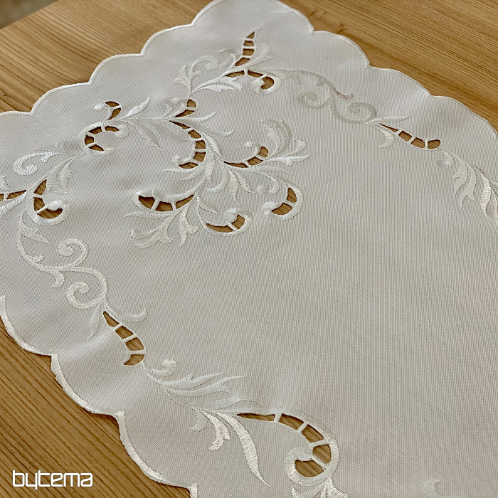 A delicate tablecloth embroidered with openwork, suitable for festive occasions.