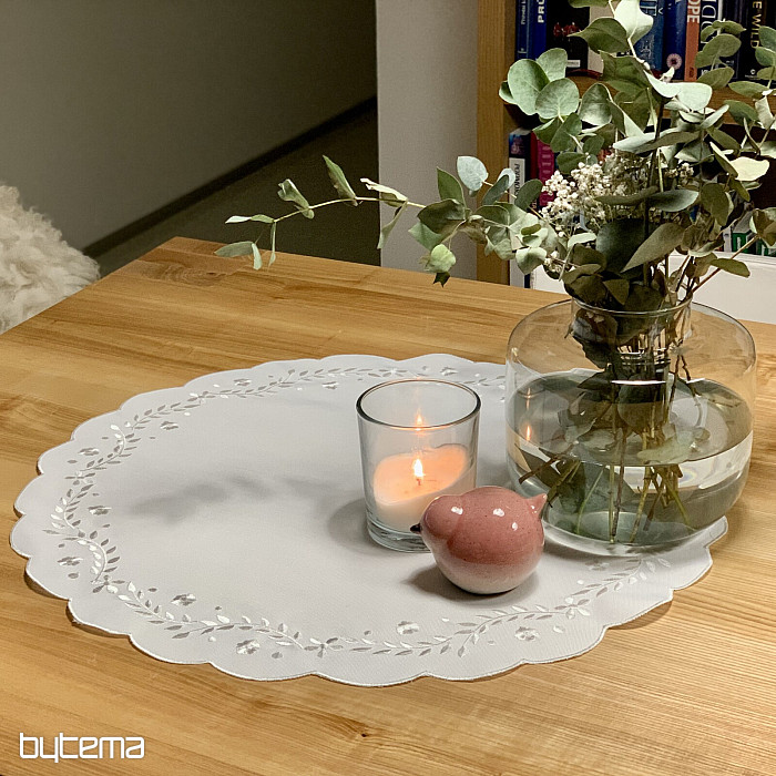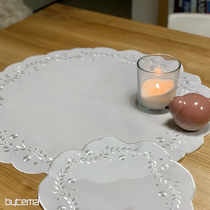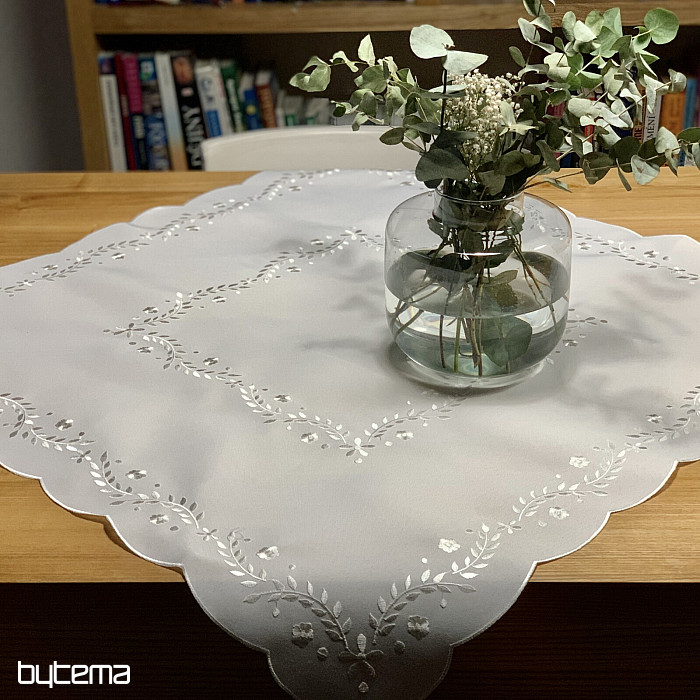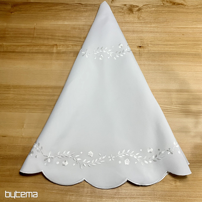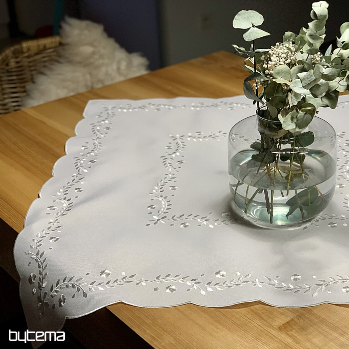 A delicate tablecloth embroidered with openwork, suitable for festive occasions.