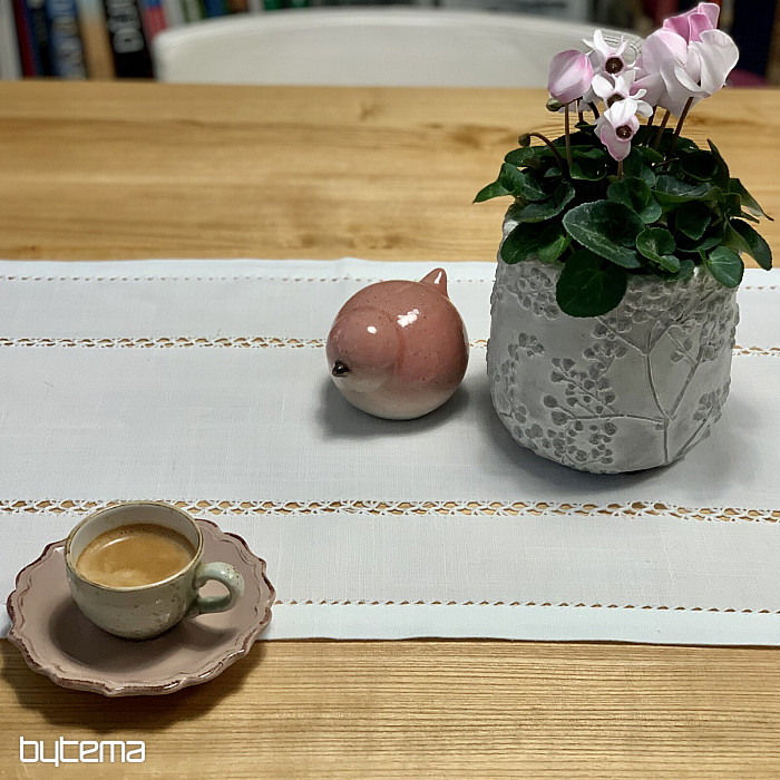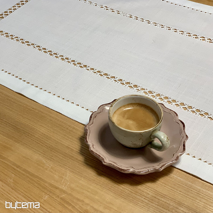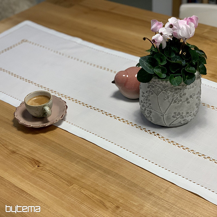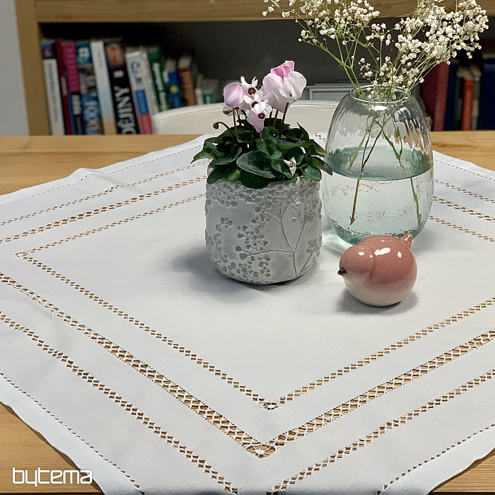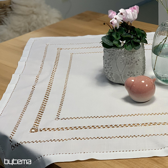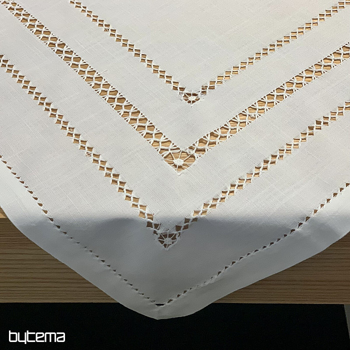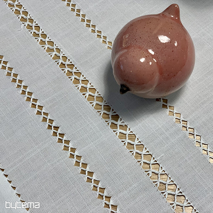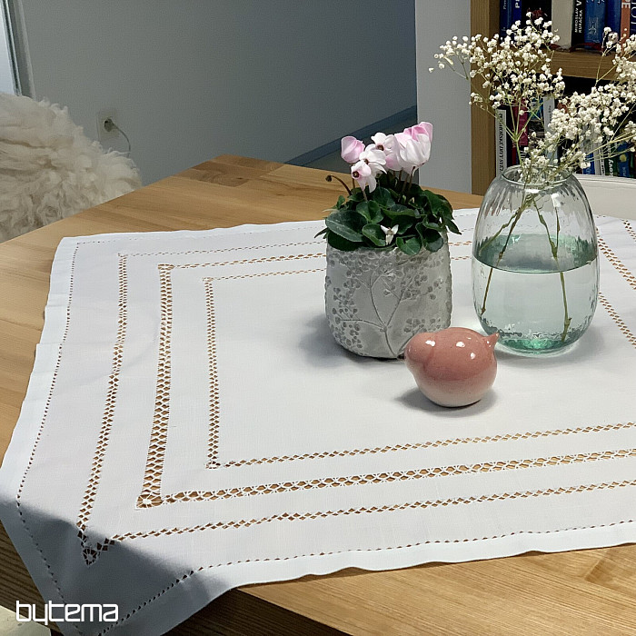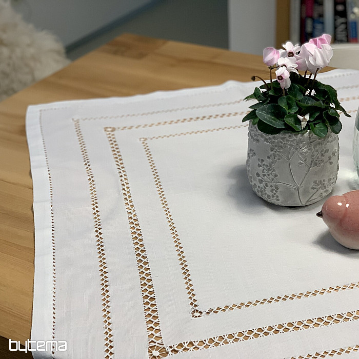 A stunning tablecloth embroidered with openwork is a great fit for all log cabins, huts and cottages, but not only there.