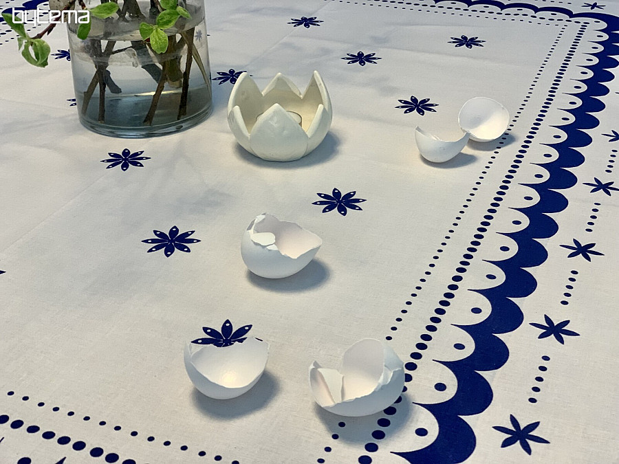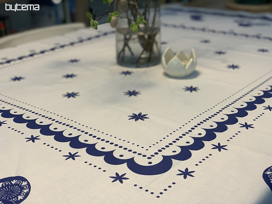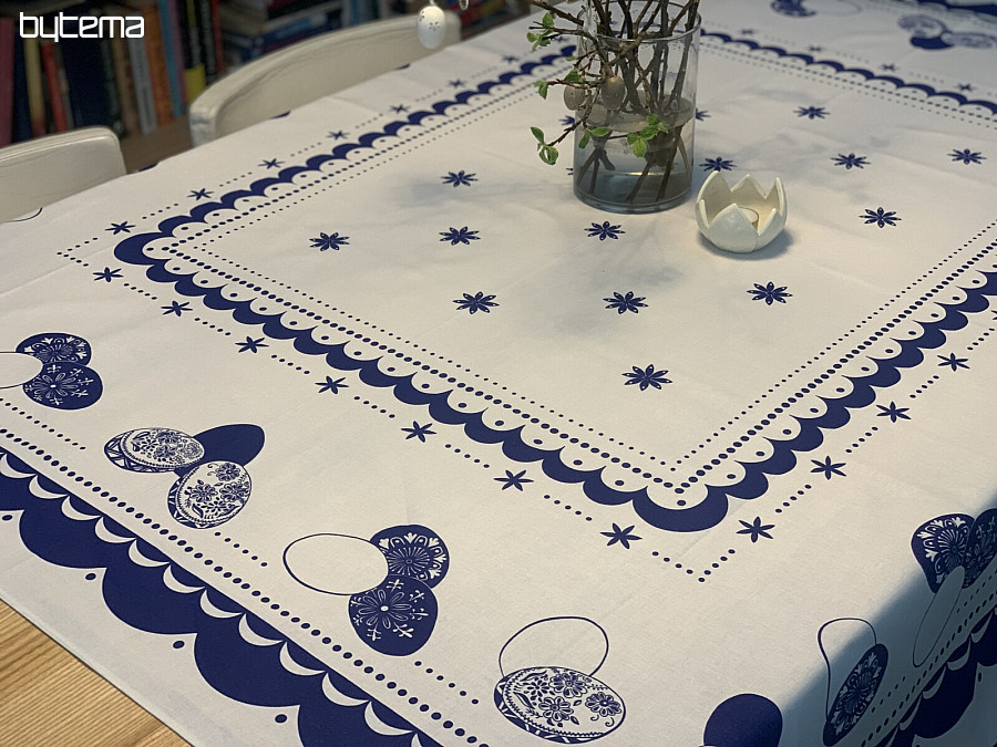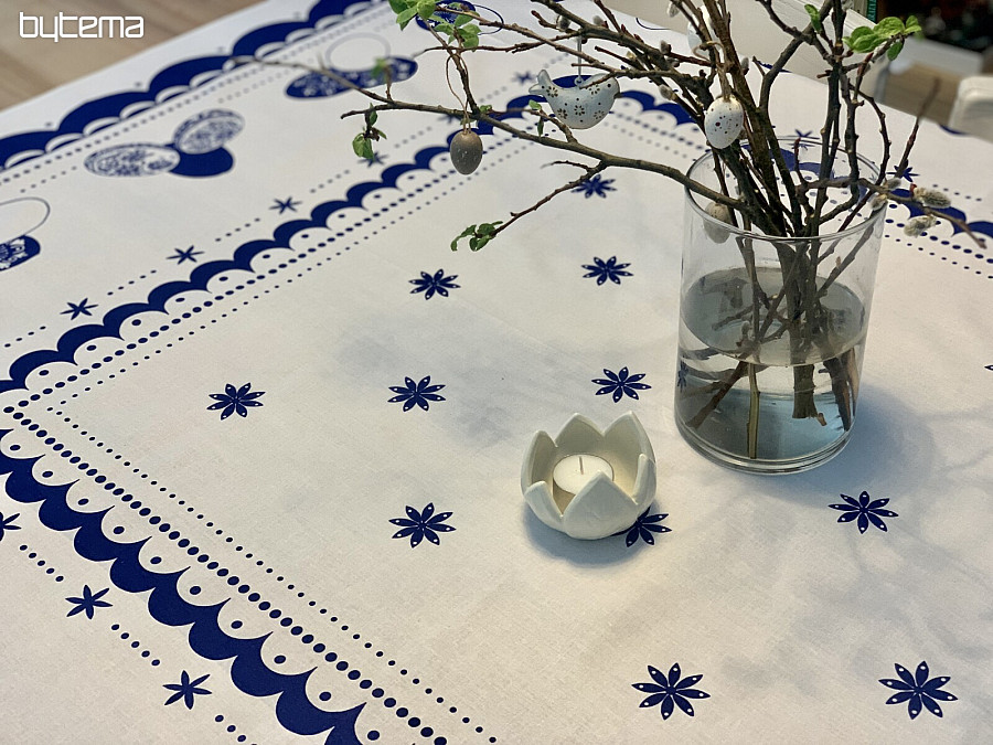 Beautiful round tablecloth with an Easter print.