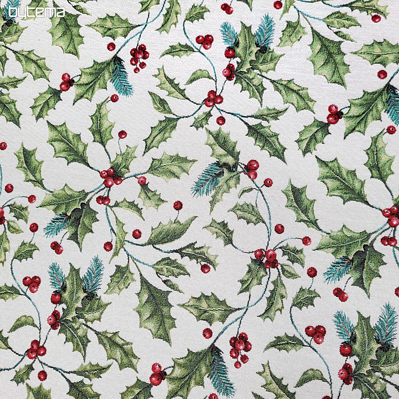 Beautiful, high quality, heavy Christmas holly tapestry fabric.