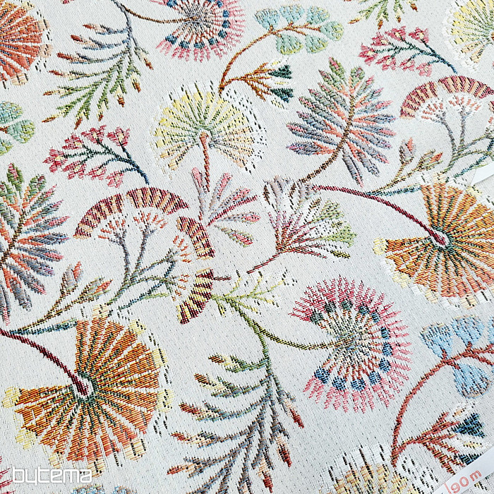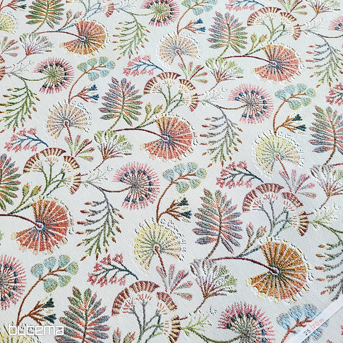 Tapestry fabric with colorful flowers is our new addition to the store. The subtle but vibrant colors add elegance to the fabric.