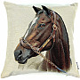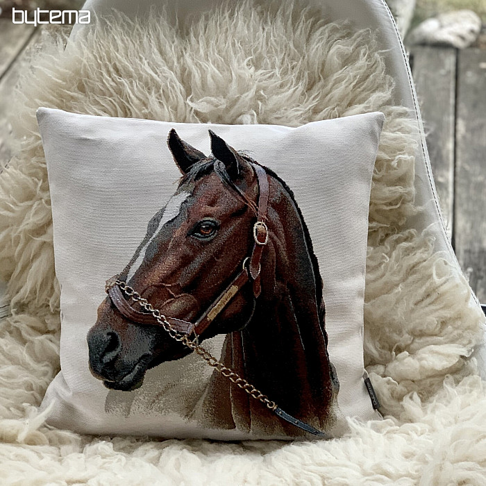 The tapestry cover with a brown horse will please all lovers of these animals.