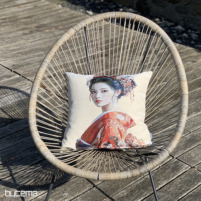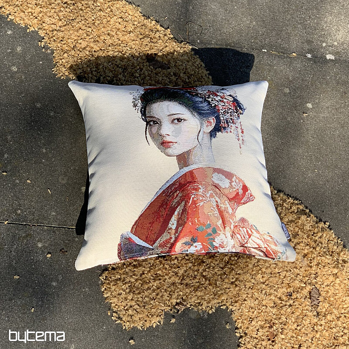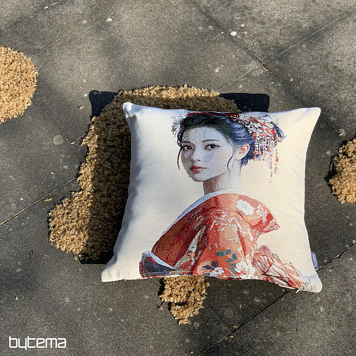 A tapestry cover with a Japanese geisha motif will decorate any tea or relaxation room.