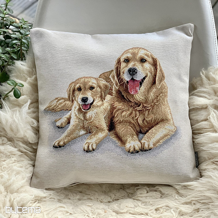 Tapestry pillowcase with a Labrador and a cute puppy. A beautiful gift for all dog lovers.