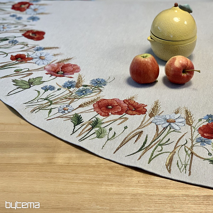 A beautiful round tablecloth made of sturdy tapestry with a touch of summer days and wildflowers. The perfect softness for summer days on your table at home.