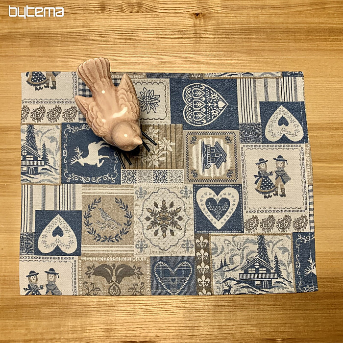 A tapestry tablecloth with a patchwork motif conjures up the pleasant atmosphere of a cozy home.