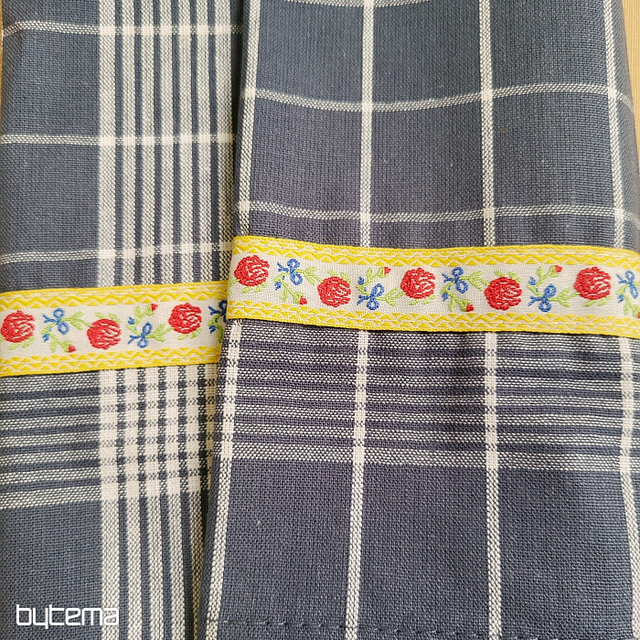 Soft cotton tea towels with a checkered motif and floral trim. A beautiful and delicate decoration for your kitchen.