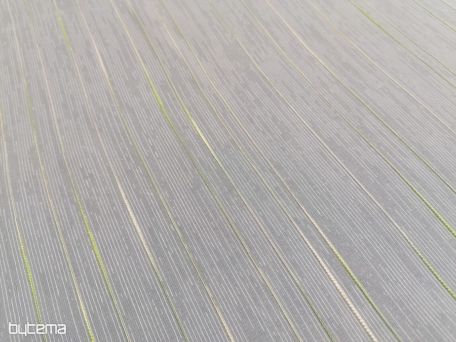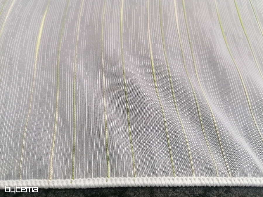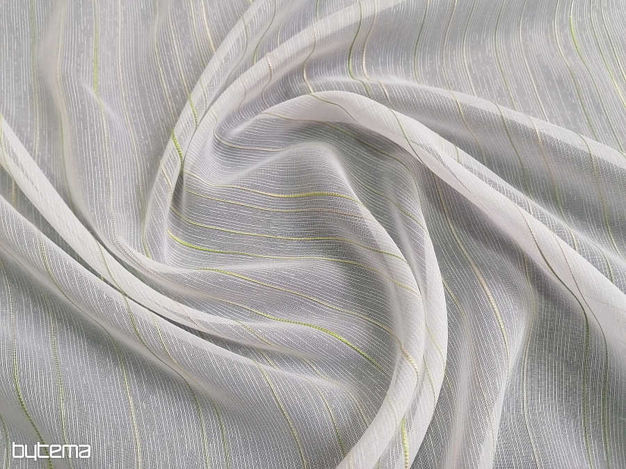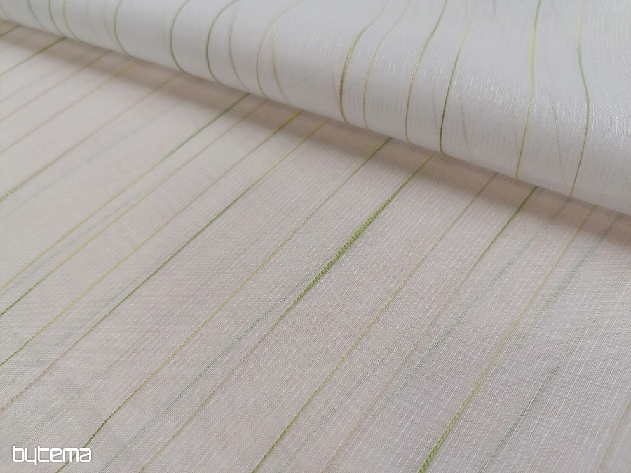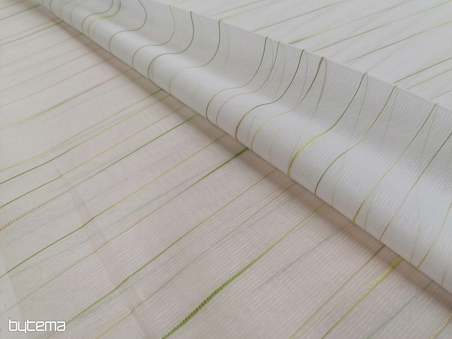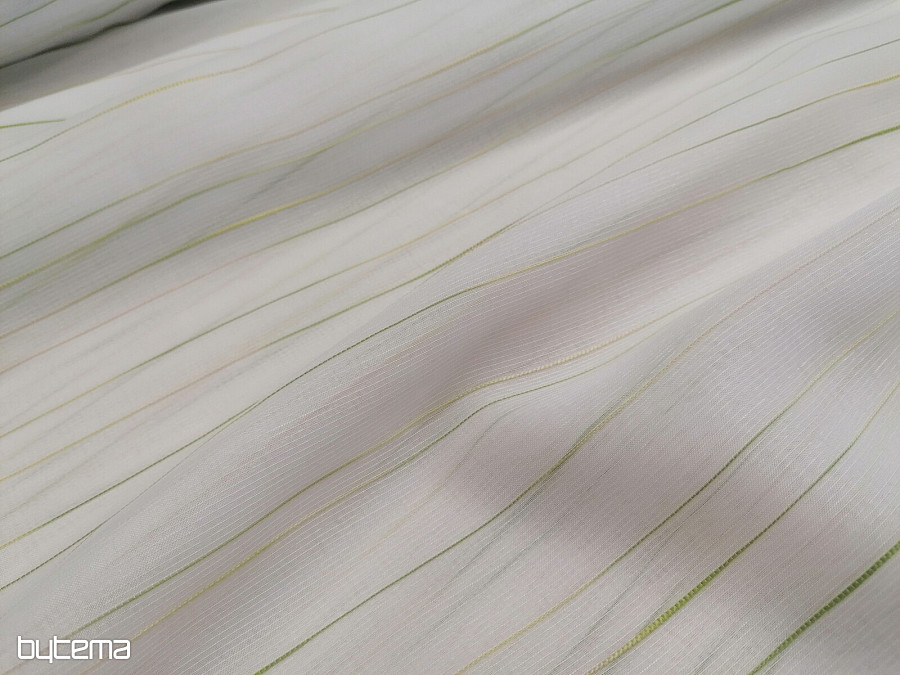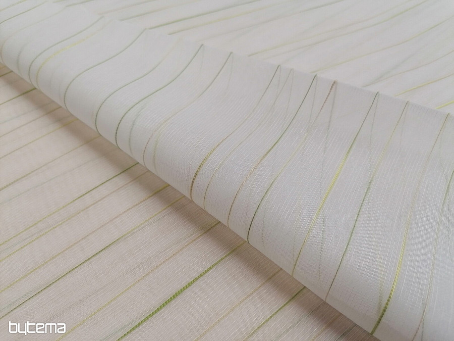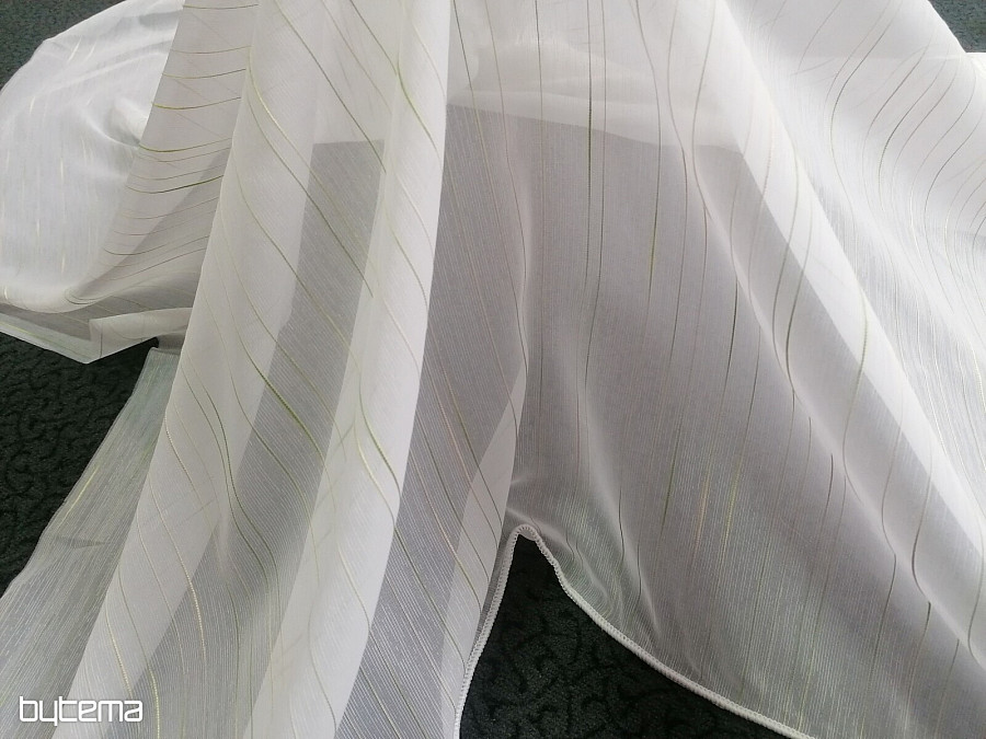 Beautiful, timeless, modern white curtain with green-beige stripes.